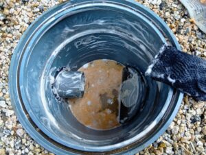 水分が多いので新聞紙などにすくい上げ水気をしっかりきってから燃えるゴミとして処分しましょう。